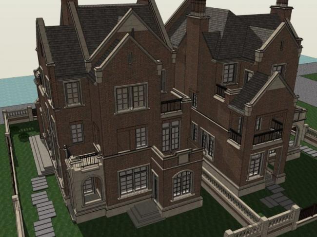 资料名字:Sketchup别墅模型|双拼别墅,古典风格