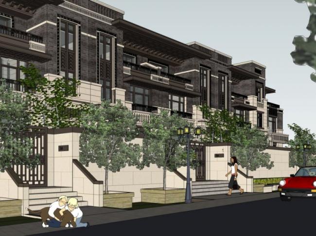 资料名字:Sketchup别墅模型|联排别墅,现代中式风格