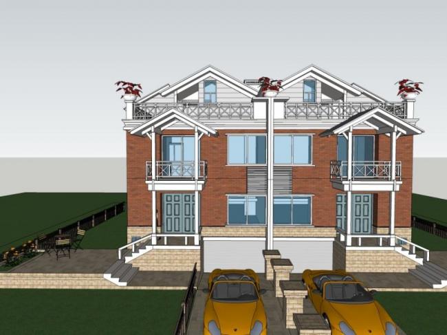 • 资料名字:Sketchup别墅模型|双拼别墅,现代风格