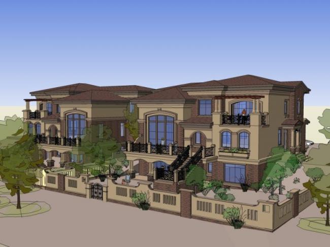 资料名字:Sketchup别墅模型|双拼别墅,欧式古典风格