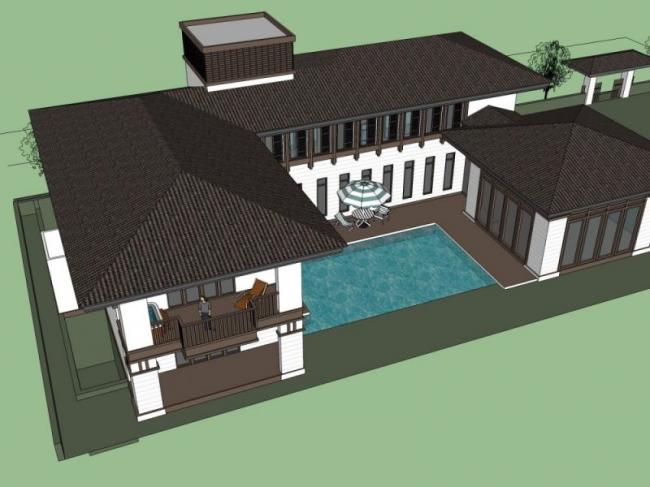 Sketchup别墅模型|独栋别墅,现代中式风格