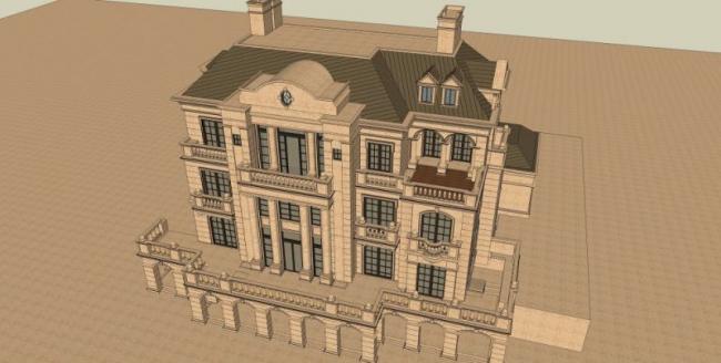 资料名字:Sketchup别墅模型|叠拼别墅,法式古典风格