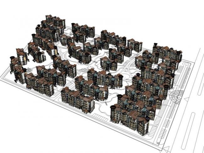 资料名字:Sketchup别墅模型|别墅群,西班牙风格