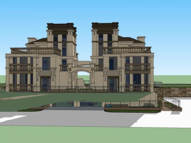 资料名字:Sketchup别墅模型|叠拼双拼别墅,古典风格