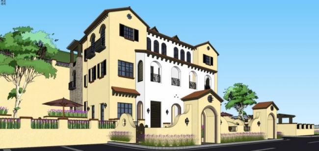 资料名字:Sketchup别墅模型|联排别墅,西班牙风格