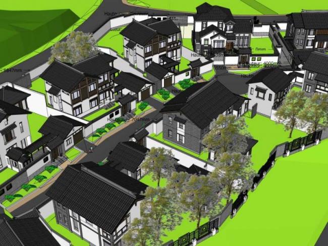 资料名字:Sketchup别墅模型|别墅群,中式风格