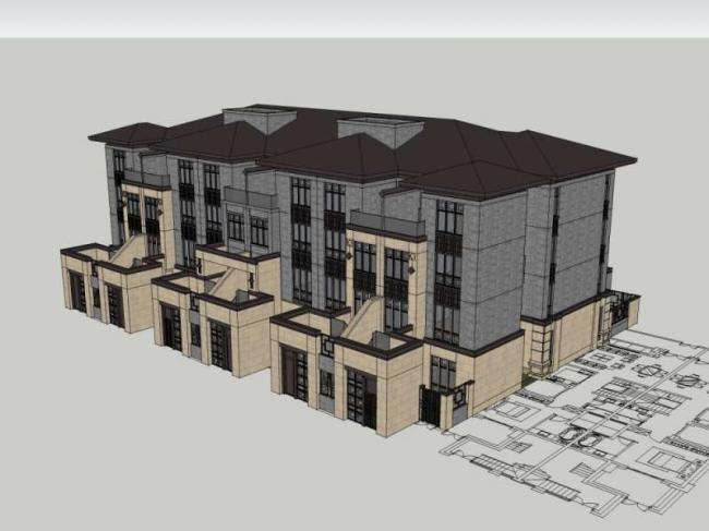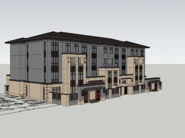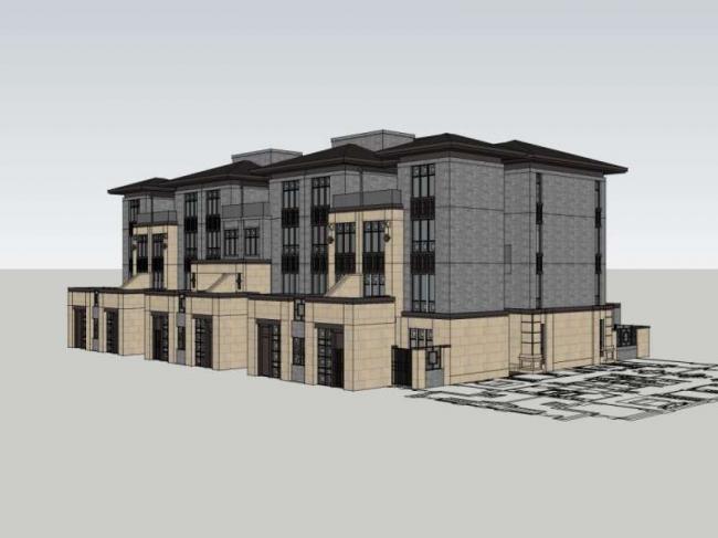 资料名字:Sketchup别墅模型|联排别墅,现代中式风格
