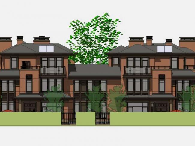 资料名字:Sketchup别墅模型|双拼别墅,现代中式风格