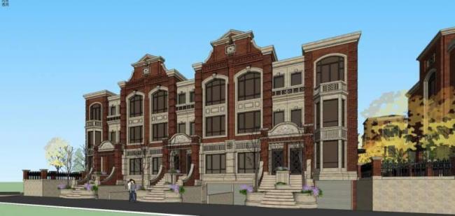 资料名字:Sketchup别墅模型|别墅群,欧式风格