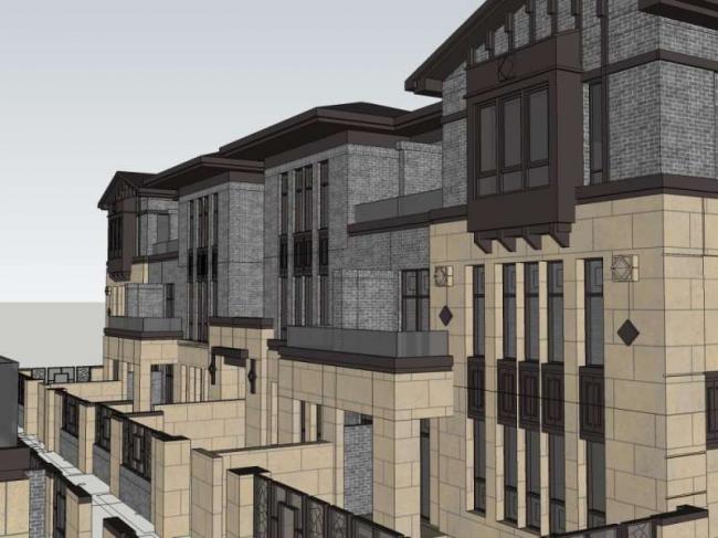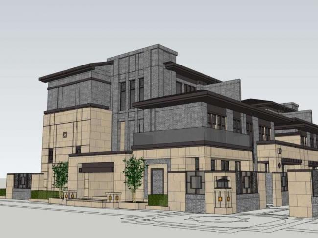 资料名字:Sketchup别墅模型|叠拼别墅,现代中式风格