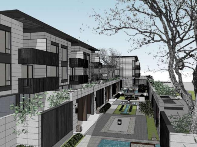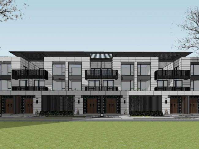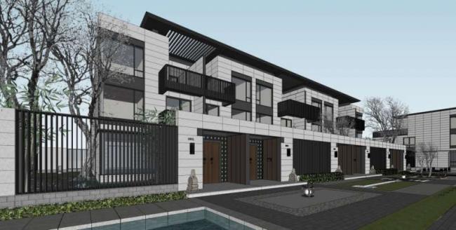 资料名字:Sketchup别墅模型|联排别墅,现代中式风格