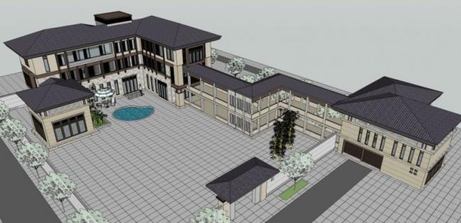 资料名字:Sketchup别墅模型|联排别墅,现代中式风格