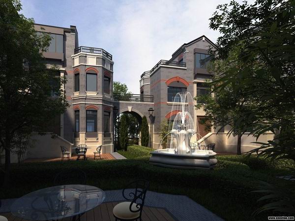 资料名字:Sketchup别墅模型|双拼别墅合院,古典风格