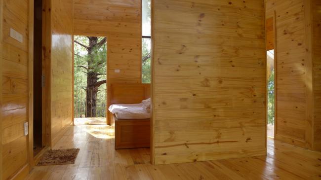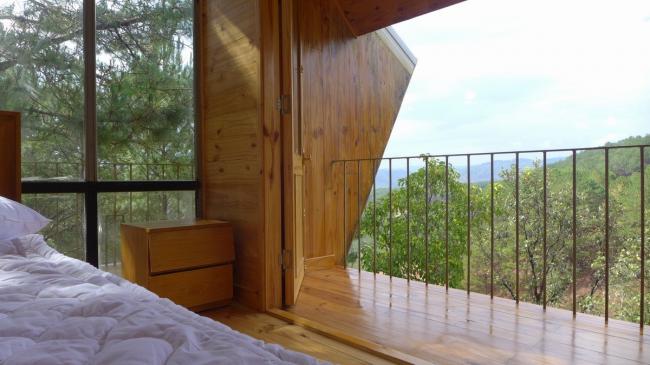 这个露天平台也是连接主办公室和卧室套房、起居室以及其他设施的桥梁。充足的光照和自然的美景更唱迭和。从下至上大片连接的落地窗,配合朴素而典雅的松木建材和节奏分明的屋顶设计,在充分利用南北两向阳光和四周环境的同时,营造了趋于一体的户内外体验。
