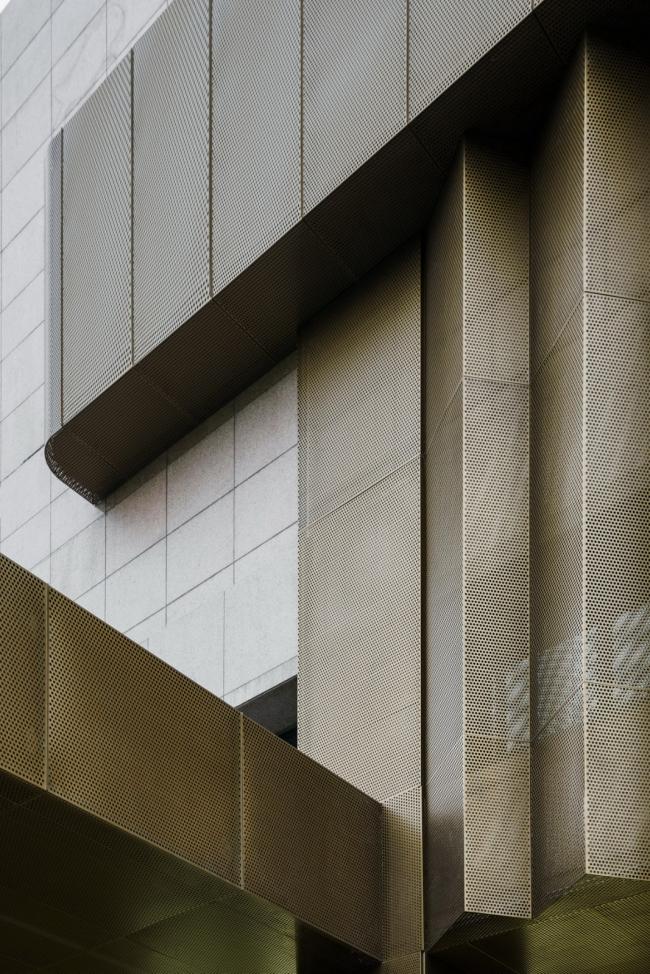 使用更为现代的色彩及材料,让建筑穿上一层金属材料铜色金属羽衣,金属诠释宝钢的新活力,重塑商务美学,用从过去沉重的钢,到如今轻盈灵动的“钢”,从保守蜕变到开放,暗喻宝钢强劲的创新力。
