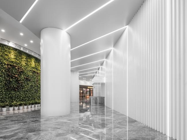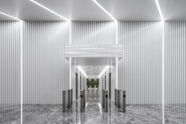 通过机电设备的空间管理,将大堂的高度由原来的4.2米提升到了现在的 4.8米,办公标准层的层高也相应提升,大大改善了用户的空间体验。