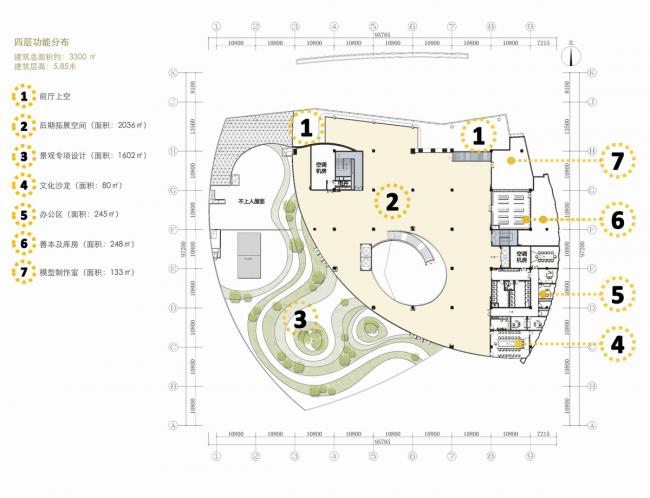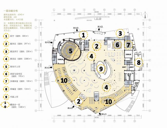 各层功能分布充分考虑现代图书馆的开放和高效性特点及新技术、新管理方式的采用。图书馆平面布局紧凑而有条理,交通组织便捷通畅,在分布藏书区、藏阅一体区、阅读区、休闲阅读区、私密阅读区、交流探讨区时,考虑到各功能分区之间的关联、管理和查阅的便捷与高效性。
