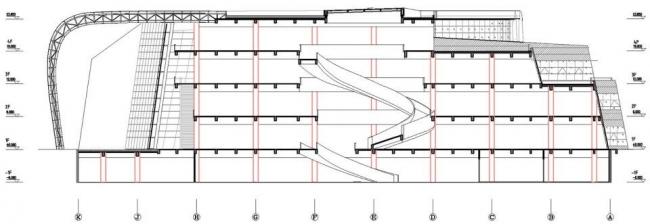 层层错落的中庭与螺旋楼梯结合在一起,形成了极富动感的中庭空间。不同于传统图书馆单一的知识传播,现代图书馆更加强调空间的共享和信息的交流,沿着室内中庭螺旋上升的楼梯串联起各层空间。