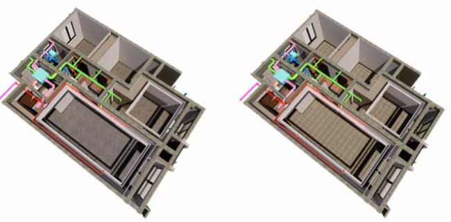 机电管综在满足设计规范的基础上,同时需要考虑土建空间的合理利用,施工和维护空间的需求性,以及净高和后续装饰的需求;基于BIM技术的三维可视化管线综合,能够直观有效合理布置管线排布和空间需求;同时输出高质量施工图,助力业主和施工团队更加理解设计,使机电设计与建造更加精准、精细。