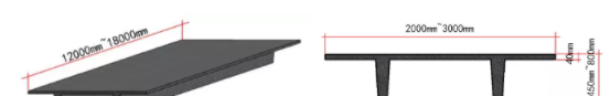 双T板主要材料为高强混凝土及预应力螺旋带肋钢筋或钢绞线制作。板跨度可以达到30m,但根据运输、吊装等一系列要求,建议跨度控制在12~18m,运输、施工便捷,综合造价比较节约。双T板单块重量如下所示: