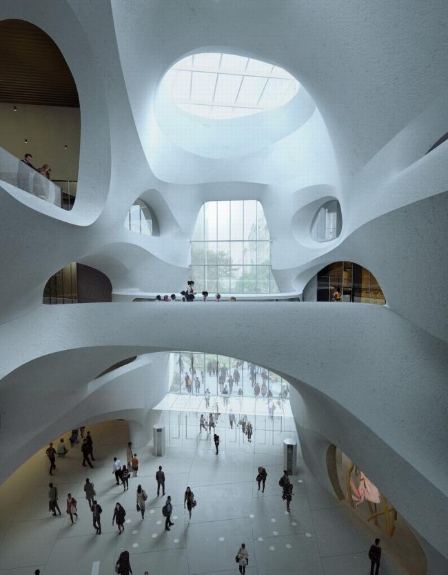 该自然历史博物馆扩建项目将包括新的画廊、教室、剧院和一座扩建的图书馆。Studio Gang建筑事务所的设计灵感来自峡谷和冰川的形态,其特点是用钢筋混凝土构成起伏的洞穴结构。正如该事务所创始人珍妮·甘所说,“我们发现了一种方法,可以极大地改善游客流量和充分发挥博物馆的各项功能,并很好的利用游客探索和发现的欲望,这既是科学的象征,也是人类活动的重要组成部分。”进入空间后,通过上方的自然光可以看到室内的各种活动情形,同时也引导游客通过中央展厅进行浏览和更深一步的了解。建筑设计源于博物馆的使命。”