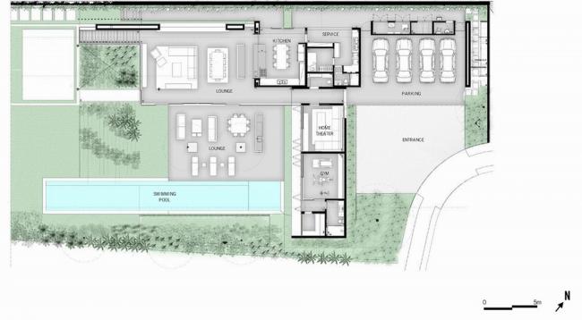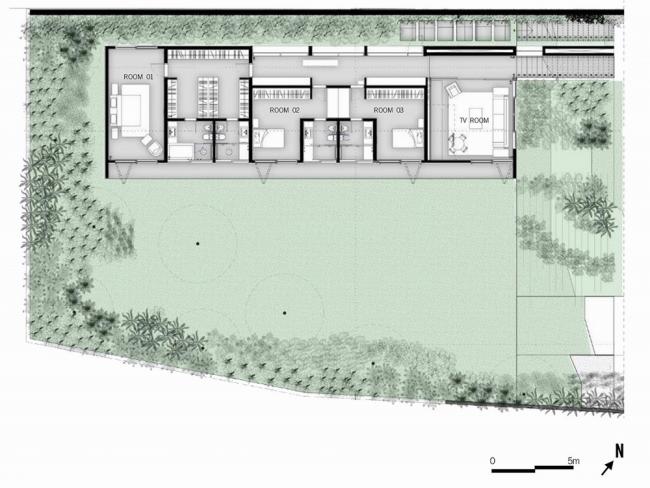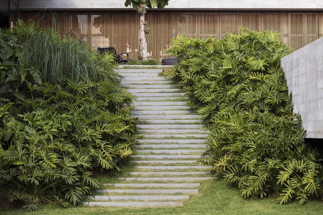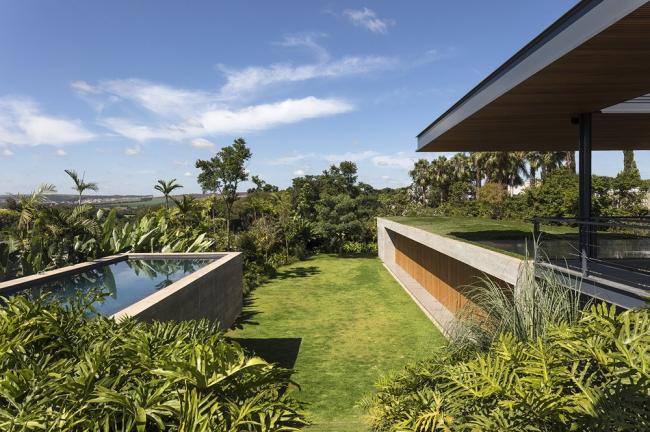 Perkins+Will圣保罗分公司承接了这个在陡坡上的项目,业主称他们想要一个一层楼的房子。建筑师将项目设计为“L”形,分成两个主要空间,第一个体块作为会客空间,包含房屋入口,被置于山坡的高位,同时起着隔离第二个体块的作用。在山坡相对低的位置则用于私人生活,其提供的隐私性远超所想。房屋布局合理,不仅所有的房间都直通花园,得到亲近自然的体验,而且所有的区域都能保证良好的隐私性和绝佳的通风。