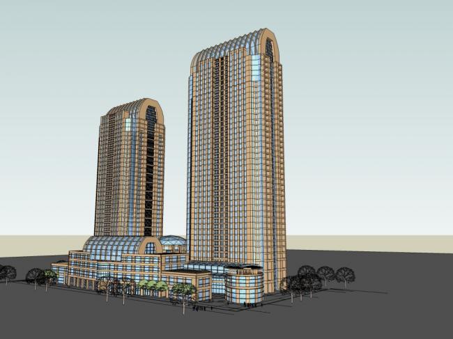 资料名字:Sketchup办公模型|超高层办公楼,古典风格