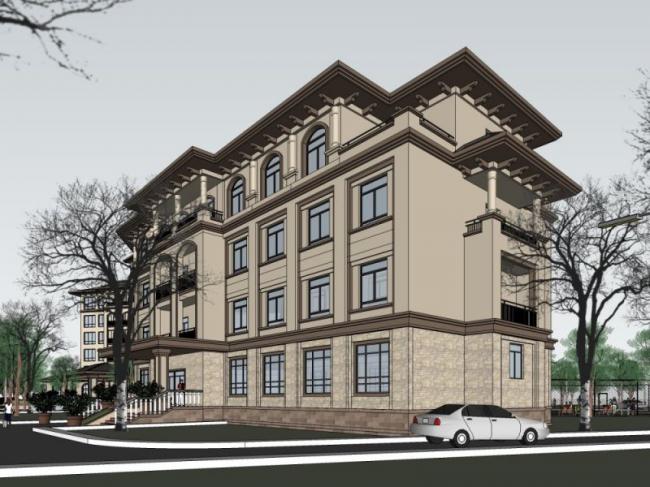 Sketchup酒店模型|多层酒店,古典风格