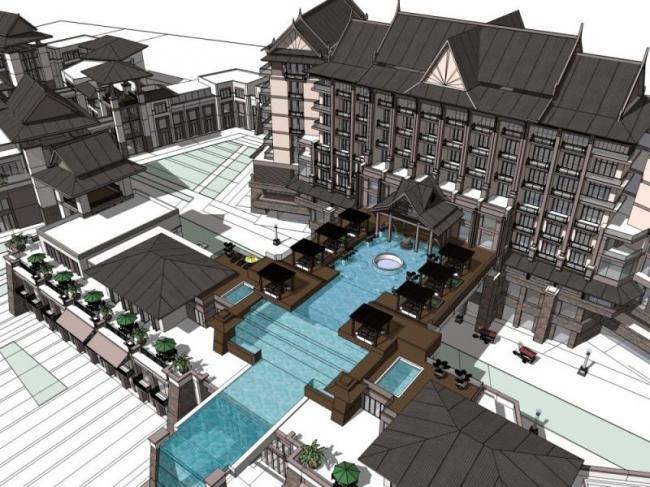 资料名字:Sketchup酒店模型|多层酒店,东南亚风格