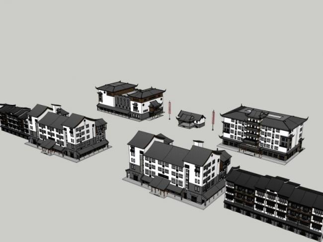 资料名字:Sketchup商业模型|多层古镇,现代中式风格