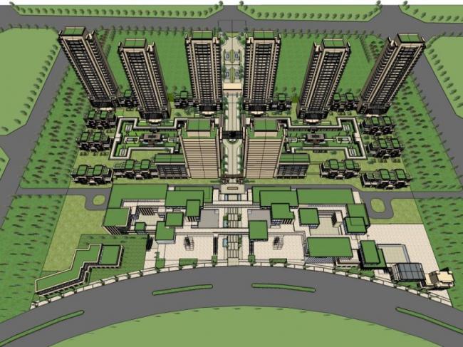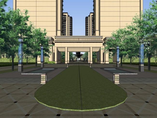资料名字:Sketchup住宅模型|高层住宅小区,古典风格