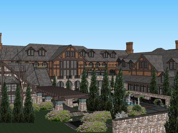 Sketchup酒店模型|多层度假村式酒店,古典风格