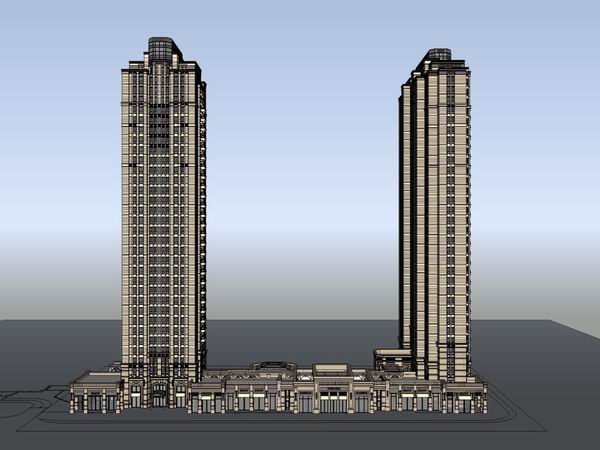 Sketchup住宅模型|高层住宅,底部商业,古典风格