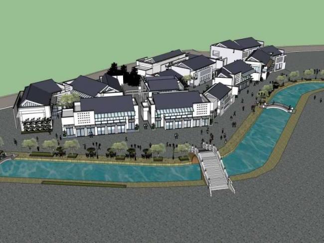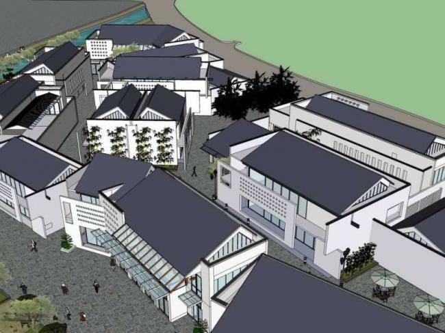 Sketchup商业模型|多层商业街,步行街,中式风格