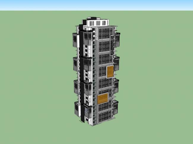 Sketchup住宅模型|高层住宅,现代风格,24层