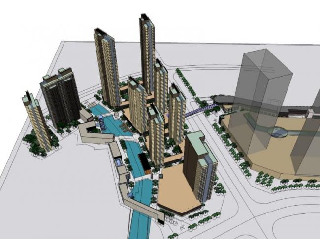 Sketchup综合体模型|多高层商住综合体,住宅,底层商业,古典风格
