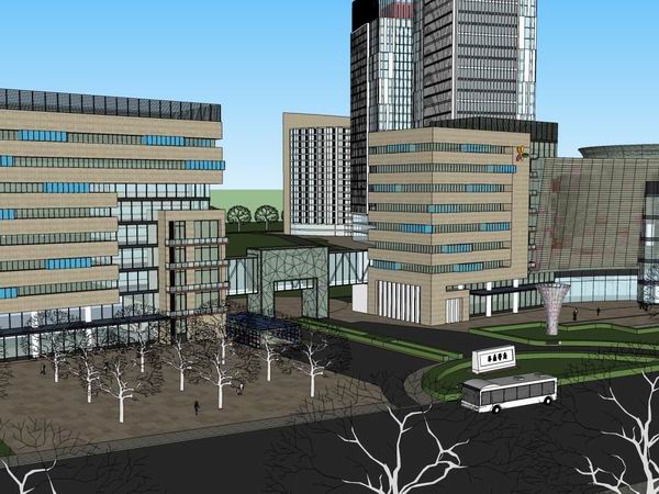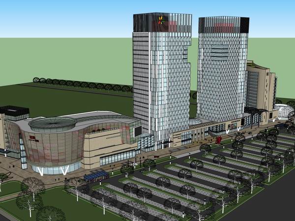 Sketchup综合体模型|多高层综合体,办公楼,商业,现代风格