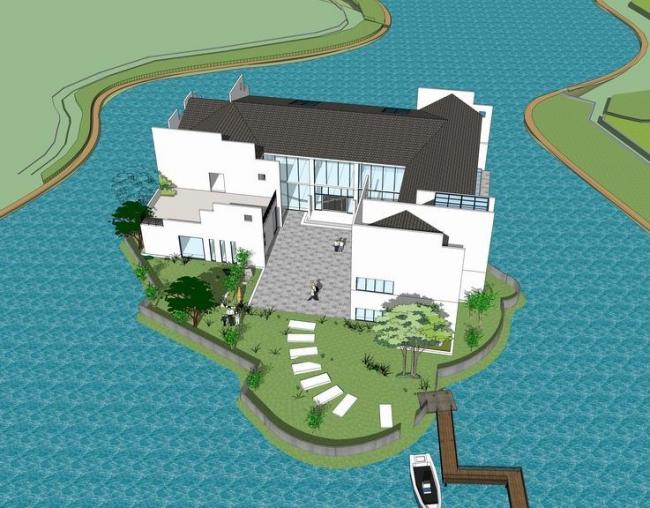 资料名字:Sketchup文化模型|多层湖心茶室,中式风格