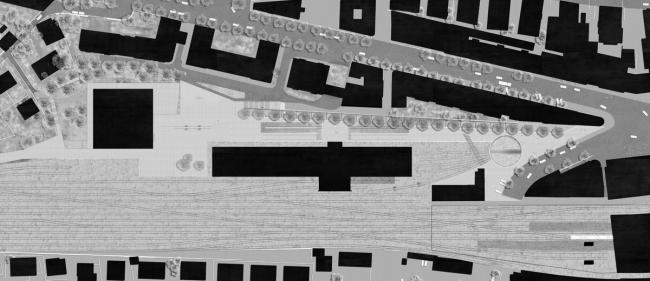该项目位于市中心,同时为城市的三个主要博物馆提出了一个总体规划:州立美术馆(MCB(BIM建筑)-A)、当代应用艺术与设计博物馆(MUDAC)和爱丽舍摄影博物馆(Musée de l'Elysée)。新的美术馆位于场地的南部边缘,是一个与铁轨平行的纵向体量。就像火车站一样,新的美术馆定义了城市空间,并保护其免受火车的干扰。三座博物馆中规模最大的州立美术馆利用这一条件,承载并表达了对场地的记忆,以务实的形式、严谨的体量和坚锐的线条呼应场地原有的工业背景。