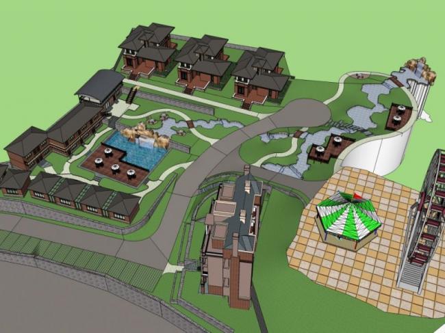 资料名字:Sketchup景观模型|山庄景观,新中式风格