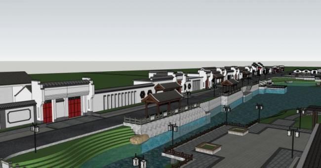 资料名字:Sketchup景观模型|滨水景观,中式风格