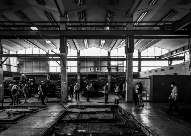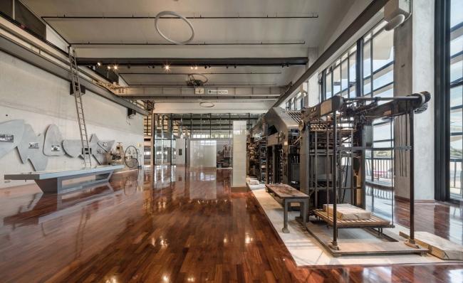 项目改造像是印刷厂精神的延续,场内大部分运用现有的饰面,加以简单的加建。在现存的大跨度的混凝土屋顶下加建了悬浮的舞厅,凸显新技术跟旧形态的交替。