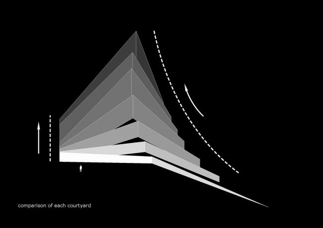 ▲ 每两个隔墙之间的夹角伴随着墙体的升高逐渐缩小,空间由宽阔到逼仄