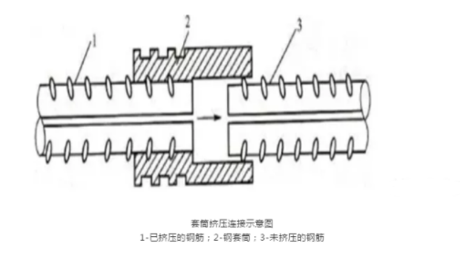 通过钢筋与连接件的机械咬合作用使两根钢筋连接在一起。常用的钢筋机械接头有挤压套筒接头、锥螺纹套筒接头和直螺纹套筒接头。