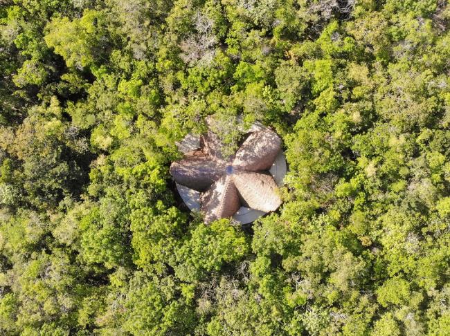 项目位于开发中心,寺庙坐落于原生丛林中的保留区,只能徒步进入,在其宁静自然环境下,非常适合思考和感受慢生活。温柔的微风穿过丛林树冠和开放式结构,营造出斑驳的光影效果。这一开放式五面结构能提供各种理疗和活动功能,包括瑜伽,冥想,工作坊和社区聚会。