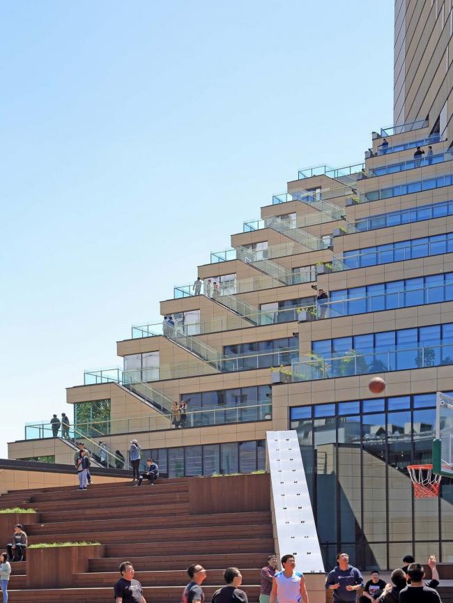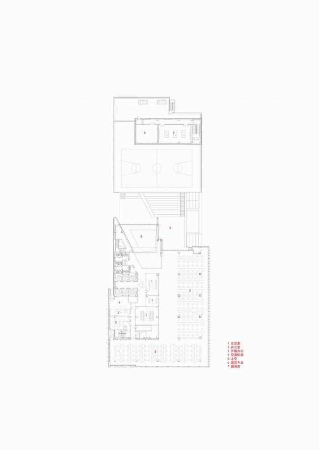 当建筑能够包容或引发城市生活的活力时,创新楼多元复合的状态也在一定程度上改变了中国院作为大型设计机构通常给人留下的印象,消解了以效率为先的大开间办公环境的枯燥与单调。平台,中庭,球场这些场所打破了封闭的空间边界,不期而遇的交流,生活化的场景,都成为对设计行为的支撑,由此集合的场所也体现了设计企业的特征。