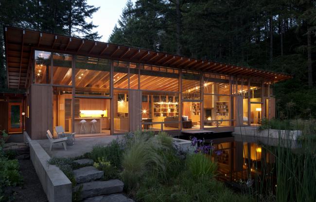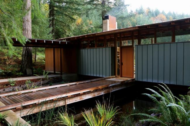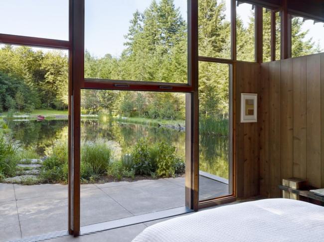 这栋独户的1650平方英尺(约153.29平方米)的住宅及其配套的550平方英尺(约51.(BIM设计)09平方米)的客房,是根据业主一直以来希望居于自然的强烈需求所设计的。私宅的选址是业主和卡特勒安德森建筑事务所(Cutler Anderson Architects)的建筑师吉姆卡特勒(Jim Cutler)共同决定的。他们在业主所有的88英亩(约0.35平方公里)的葡萄种植园里,挑中了一块植被茂密且不利于葡萄种植,但临近人造池塘的场地用于私宅的建造。