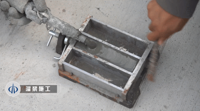 流动性检测合格,留置抗压强度试块,开始灌浆;