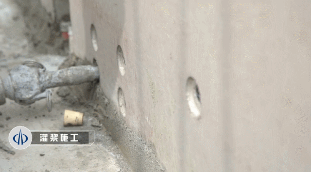 灌浆采用压力泵,从下孔注浆,待灌浆料从上排浆孔流出时,封堵上排灌浆孔,封堵最后一个灌浆孔时应持压30秒,确保灌浆质量。