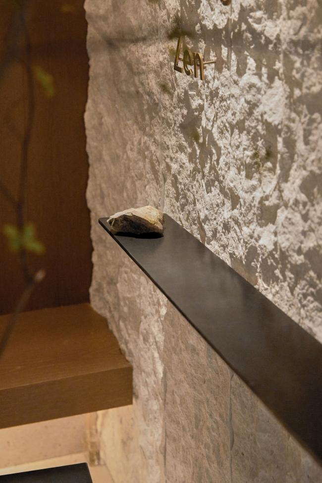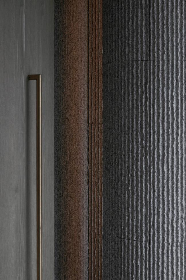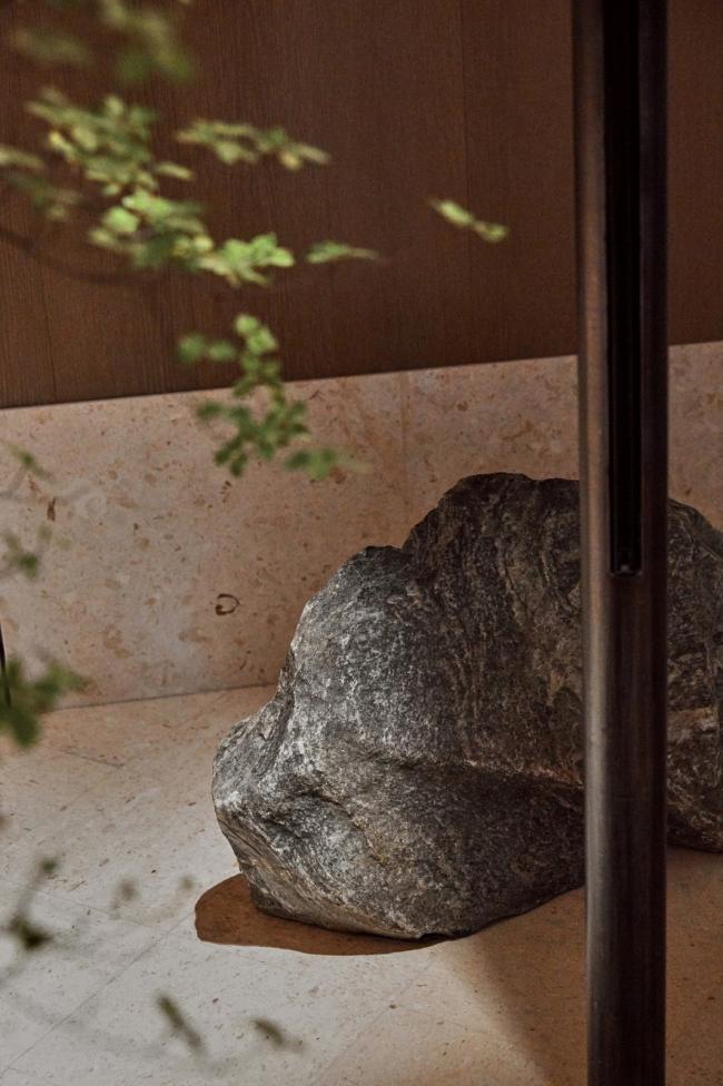 空间中大面积使用天然元素,石与木的肌理作为空间的皮肤,或温润、或粗犷、或精致、或自然。朴质自然而近乎于本质的自然元素。手能够接触的部分,软硬,冷暖,圆润,光滑或粗糙,不同尺度、厚度和温度,一切都会根据时间和质地的不同,给消费者带来触觉上的愉悦。空间的质地和色彩都源自于材质,它本身体现着自然的意志,愈是回归自然,愈是能感受到自然的温度。